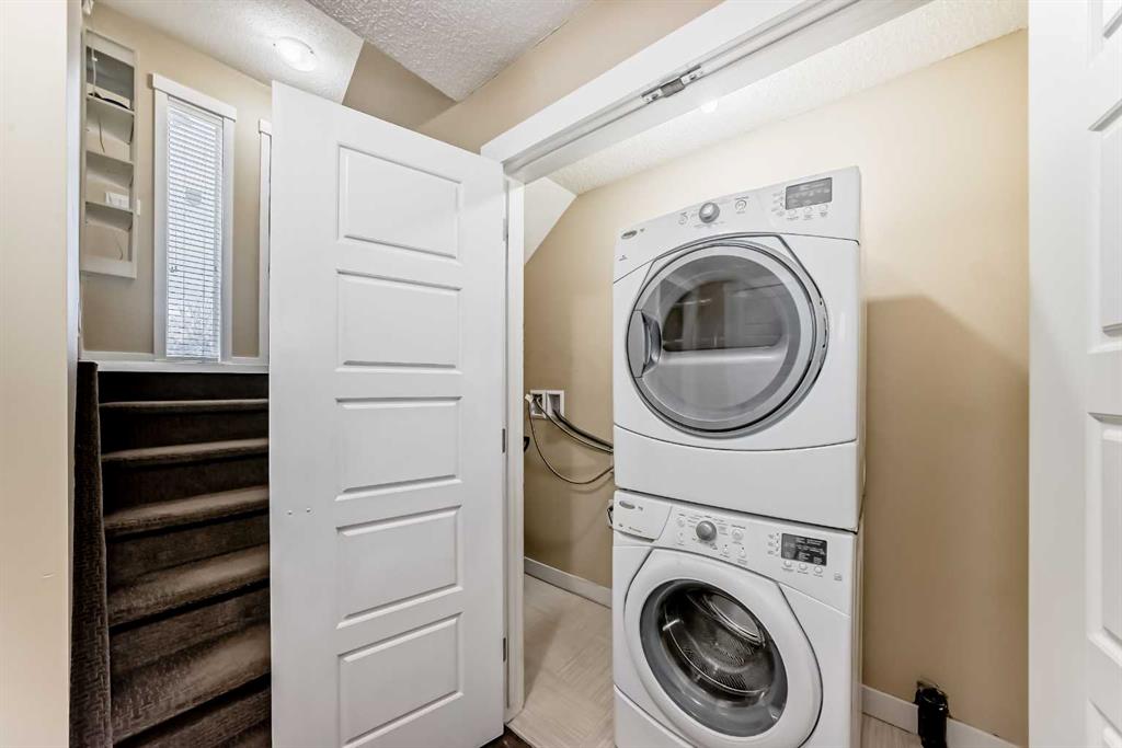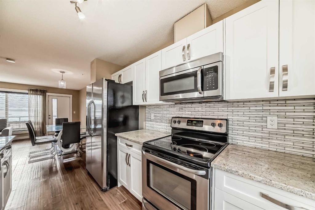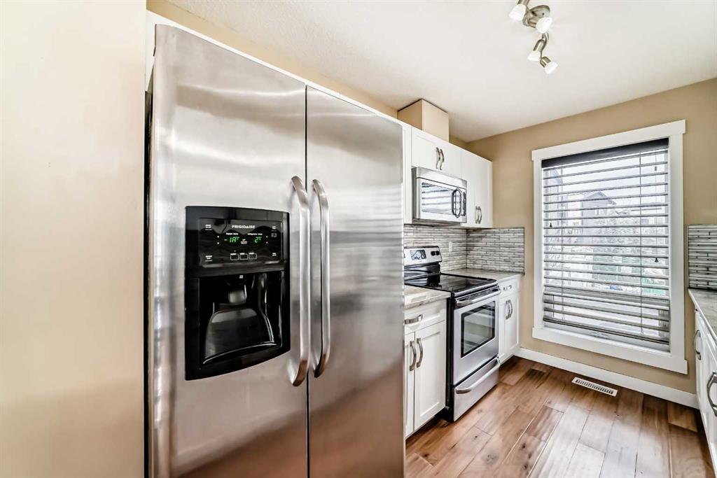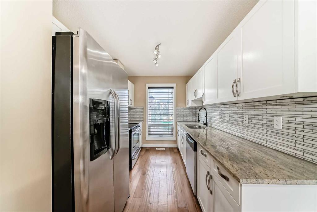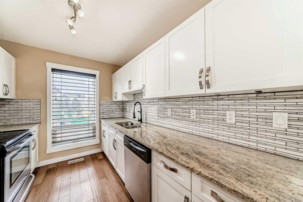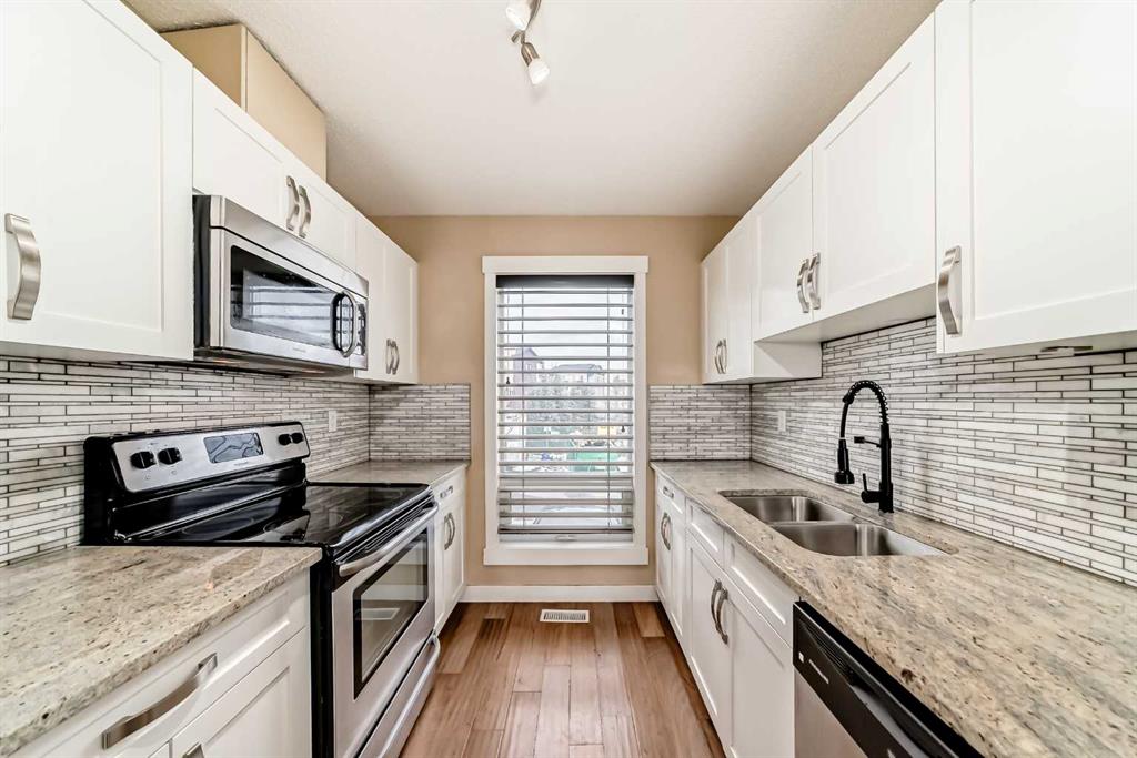 This Modern 2 bed, 2 bath end-unit is located in the highly sought after community of Coventry Hill and comes with a front parking pad. The main level consists of an open plan with sparkling hardwood floors and large windows that bring in tons of natural sunlight. The kitchen offers upgrade S/S appliances, custom cabinets, tiled backsplashes and granite countertops. completing the main level is a good sized dining area plus a large living room with access to a lovely West facing balcony. Upstairs you will find an oversized primary bedroom with a walk-in closet, 4pc ensuite and a 2nd balcony. The lower level consists of a good sized 2nd bedroom, a 3pc bath plus laundry area and extra storage. Located close to schools, parks, City transit, major shopping/restaurants and easy access to main roadways. A must see !!