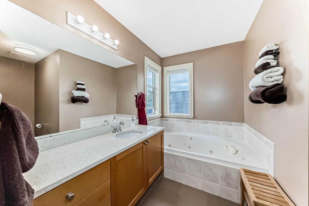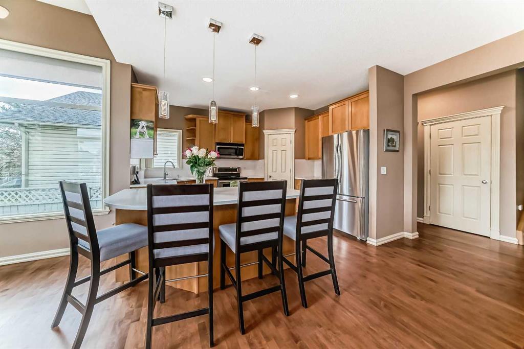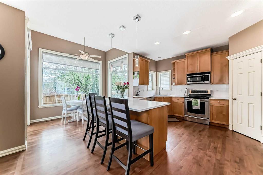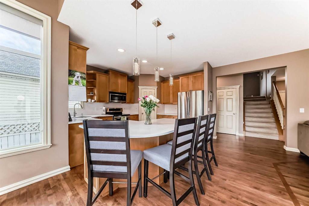 Luxury meets comfort in this gorgeous 3 bed, 2.5 bath former Show Home nestled on a quiet street in the highly sought after community of Lakeview Landing. The main level consists of an open plan with lovely hardwood flooring and large windows that bring in tons of natural sunlight. The kitchen is a chef's delight offering S/S appliances, quartz countertops, custom cabinets plus a corner pantry and huge breakfast bar that overlooks the large living room and separate eating area that grants access to a huge East facing backyard. Completing the main floor is a good sized den/office that could be used as a formal dining room plus a 2pc bath and laundry area/mudroom off the double attached garage. Upstairs you will find a spacious bonus room with a cozy gas fireplace plus an oversized primary bedroom with a walk-in closet and spa-like ensuite. Two additional bedrooms and a 4pc bath complete the upper level. The basement is ready for development, offering high ceilings, large windows and bathroom rough-in. Additional bonuses include a fully finished garage plus a central vacuum system and water softener. The exterior is fully fenced and landscaped with a massive backyard, good sized shed and large deck that is perfect for outdoor gatherings. Located close to schools, parks, Chestermere Lake, walking paths plus major shopping and easy access to main roadways. A must see !! Ask for a copy of the Home Inspection completed on June 25, 2025.