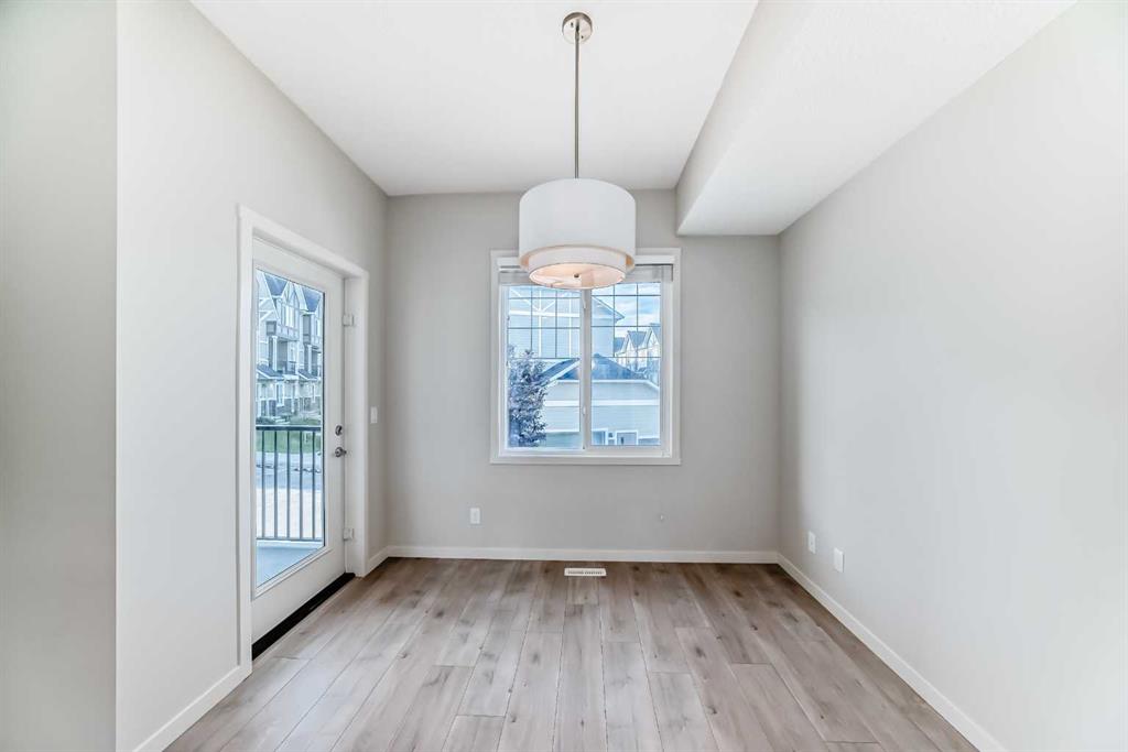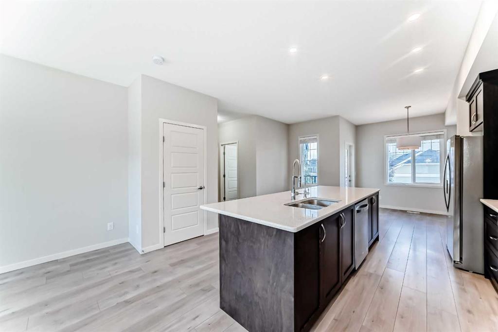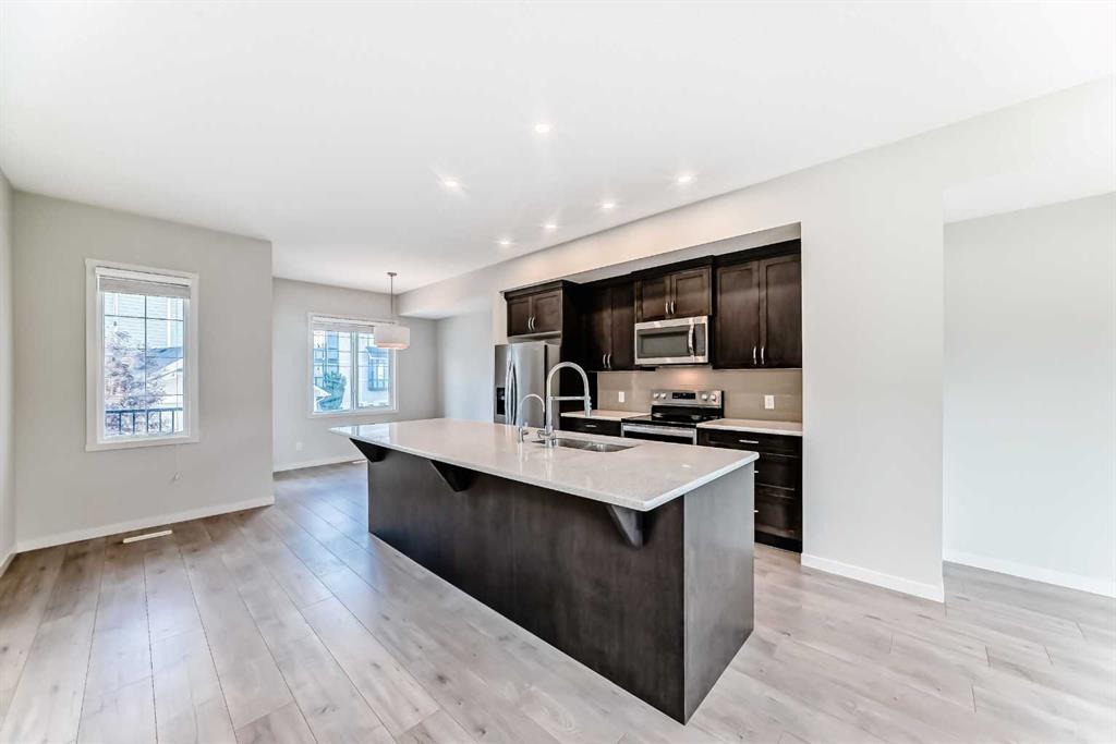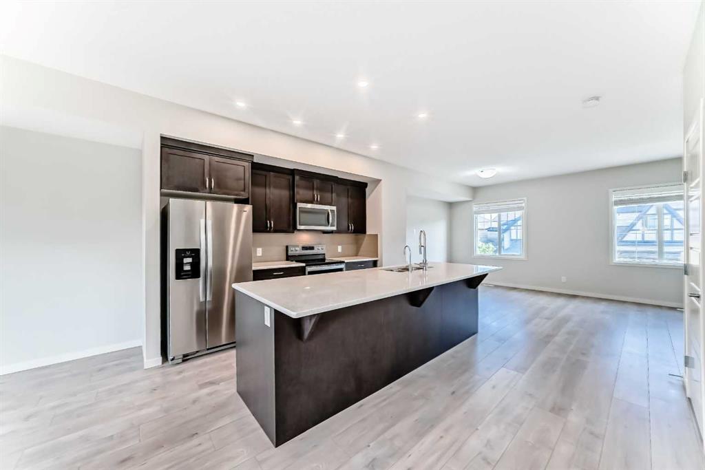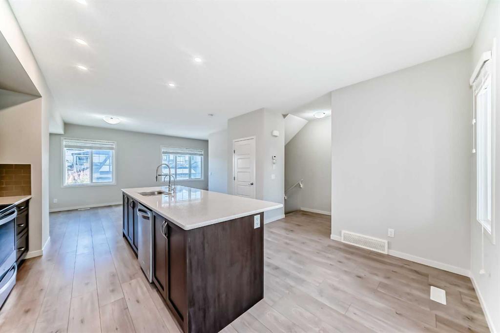 This gorgeous 3 bed, 2.5 bath townhome comes with a double attached garage and shows like new. The main level consists of luxury vinyl plank flooring, 9' ceilings and large windows that bring in tons of natural sunlight. The kitchen is a Chef's delight offering upgraded S/S appliances, custom cabinets, granite counter-tops and a huge center island/breakfast bar that overlooks the large living room. Completing the main floor is a 2pc bath plus a separate dining area that grants access to a North facing balcony with a BBQ gas line hook-up. Upstairs you will find an oversized primary bedroom with a walk-in closet plus a 4pc ensuite with dual vanities. Completing the upper level are two additional bedrooms, another 4pc bath and laundry area. The lower/ground floor level features a spacious den/office area plus a storage/furnace room and access to the double attached garage. Located close to schools, parks, playgrounds, walking paths, City transit, major shopping/restaurant's and easy access to main roadways.