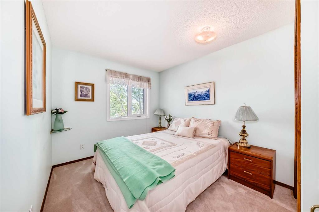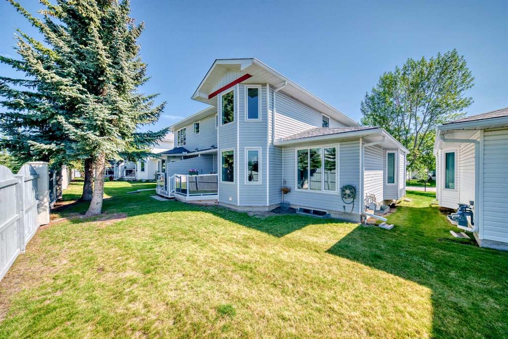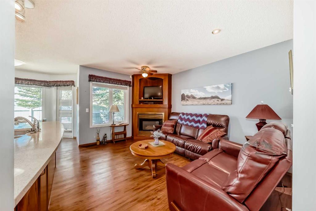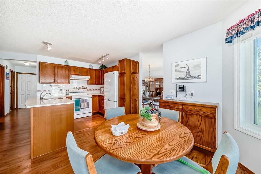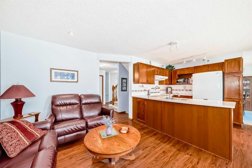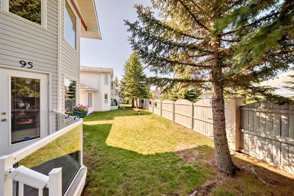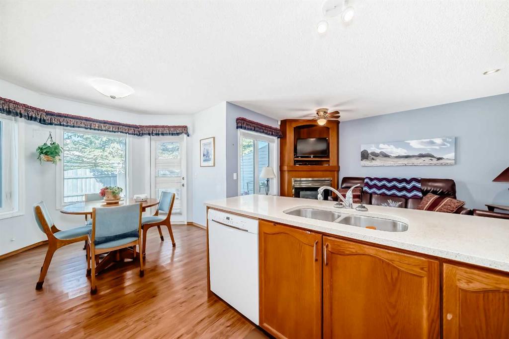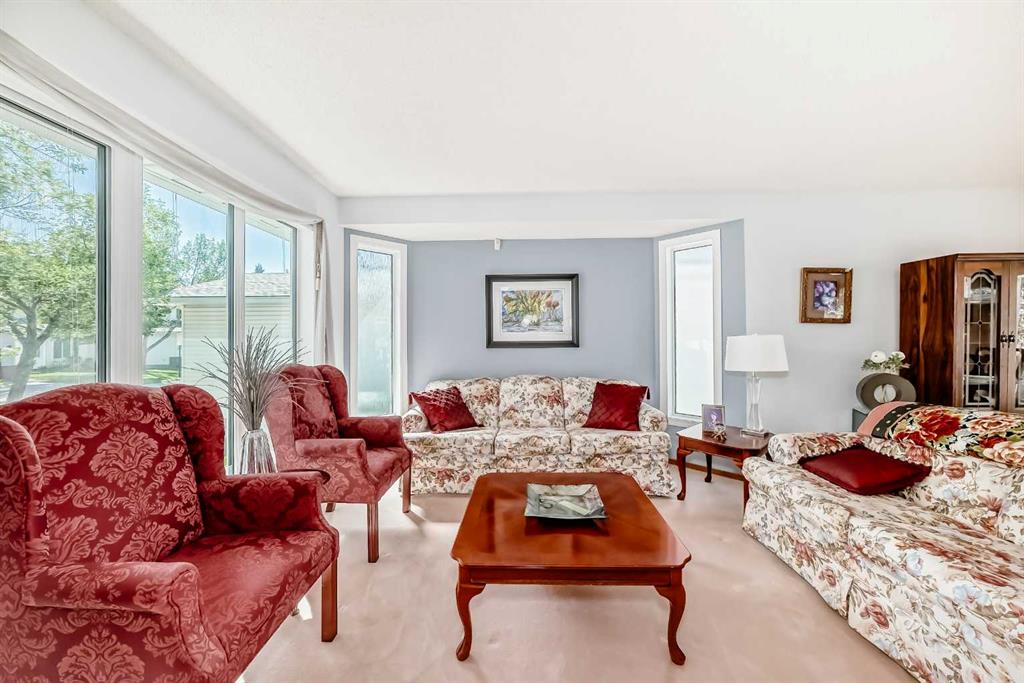 Pride of ownership exudes from this "original owner" fully developed duplex in the highly sought after complex of "Scenic Gardens". The main floor consists of high ceilings, lovely laminate flooring and large windows that bring in tons of natural sunlight. The kitchen offers ample cupboard/counter space with granite countertops and a large island that overlooks a spacious family room with a cozy gas fireplace. Completing the main level is a formal dining and living room, 2pc bath, laundry area plus a spacious breakfast nook that grants access to a sunny West facing patio overlooking a greenspace. Upstairs you will find a huge primary bedroom with a walk-in closet, sitting area and a 4pc ensuite. Two additional bedrooms plus another 4pc bath complete the upper level. The basement has been fully finished offering an oversized Rec room plus an office/flex area and plenty of extra storage space. Additional bonuses include a double attached garage with a front driveway plus a built-in vacuum system and water softener. Located close to schools, parks, playgrounds, major shopping/restaurants, steps to the LRT station and easy access to main roadways. These homes rarely come up for sale so book your showing fast.