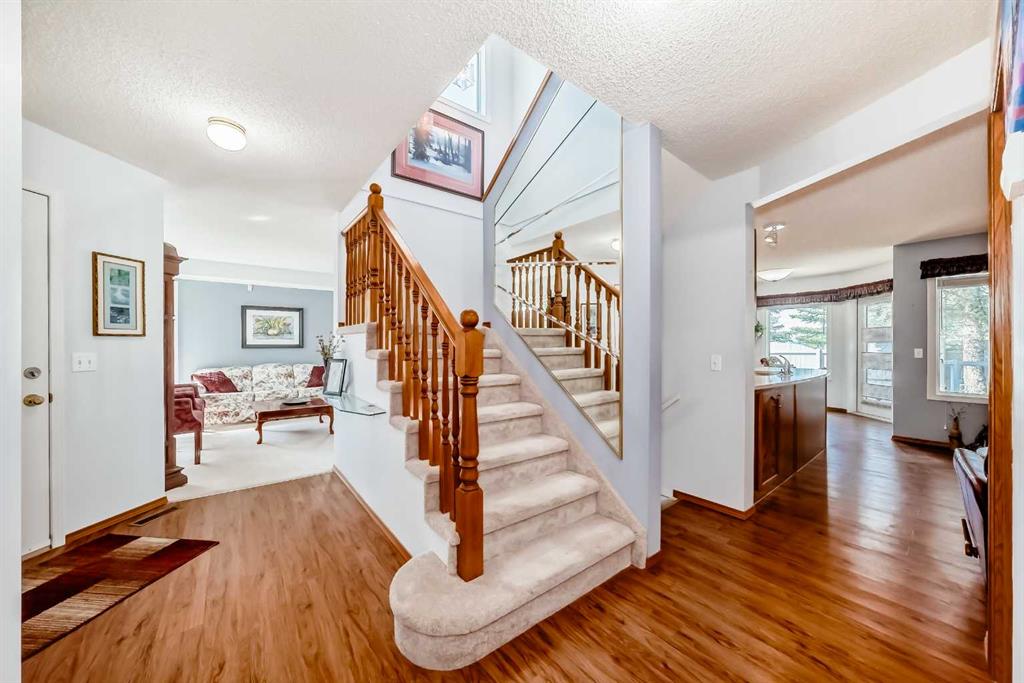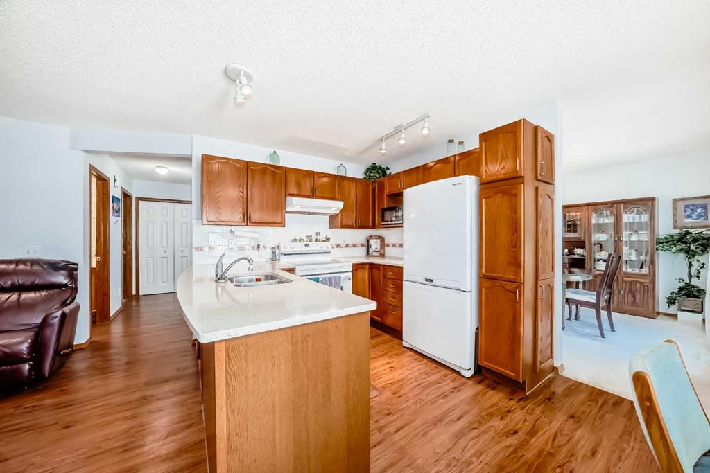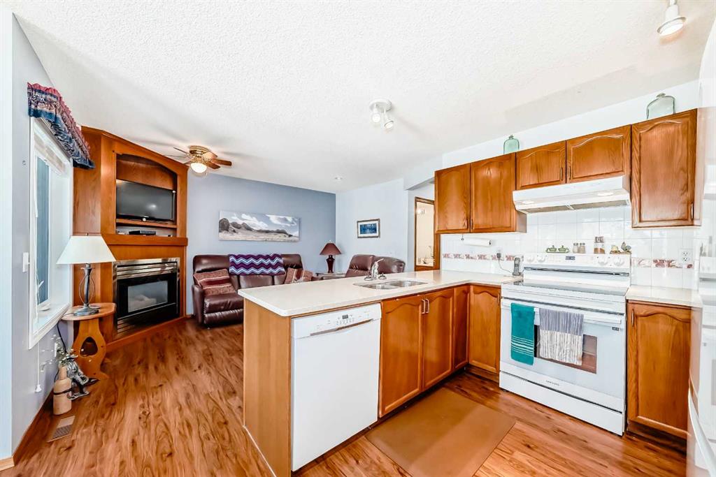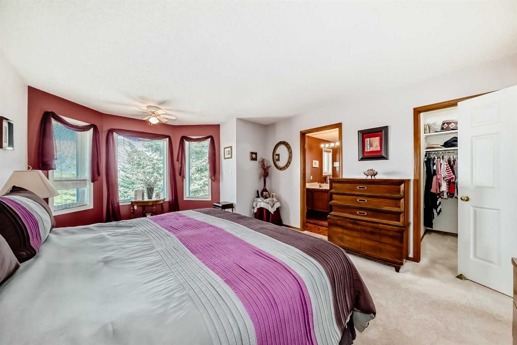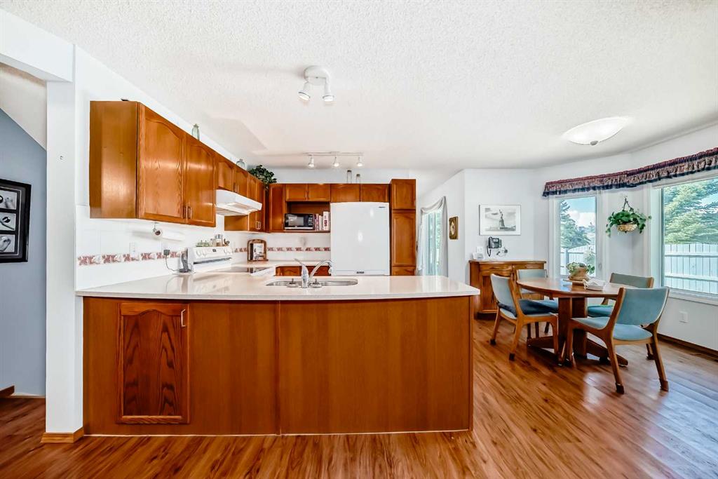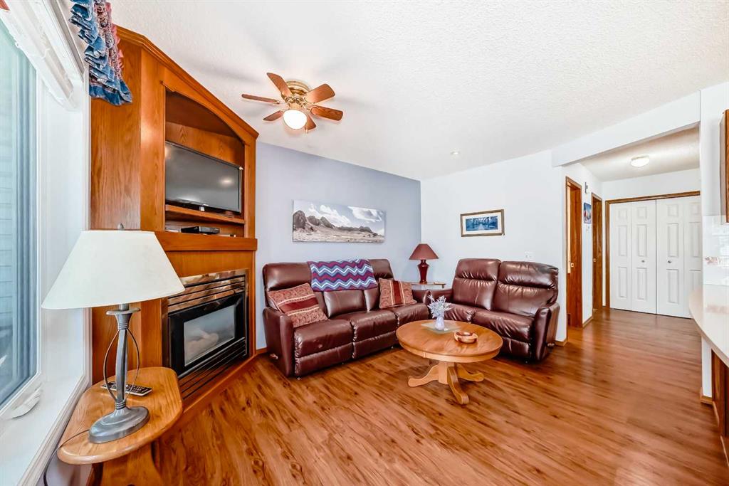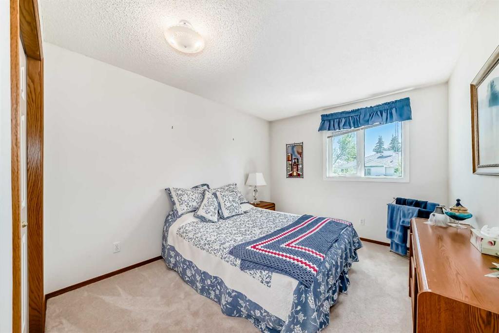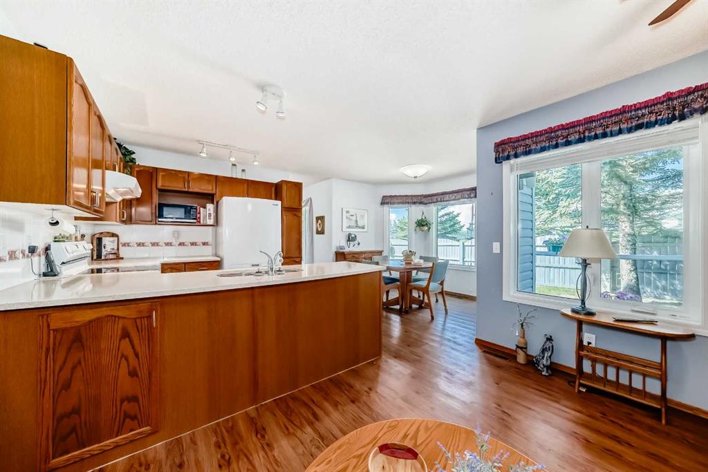 Pride of ownership exudes from this "original owner" fully developed duplex in the highly sought after complex of "Scenic Gardens". The main floor consists of high ceilings, lovely laminate flooring and large windows that bring in tons of natural sunlight. The kitchen offers ample cupboard/counter space with granite countertops and a large island that overlooks a spacious family room with a cozy gas fireplace. Completing the main level is a formal dining and living room, 2pc bath, laundry area plus a spacious breakfast nook that grants access to a sunny West facing patio overlooking a greenspace. Upstairs you will find a huge primary bedroom with a walk-in closet, sitting area and a 4pc ensuite. Two additional bedrooms plus another 4pc bath complete the upper level. The basement has been fully finished offering an oversized Rec room plus an office/flex area and plenty of extra storage space. Additional bonuses include a double attached garage with a front driveway plus a built-in vacuum system and water softener. Located close to schools, parks, playgrounds, major shopping/restaurants, steps to the LRT station and easy access to main roadways. These homes rarely come up for sale so book your showing fast.