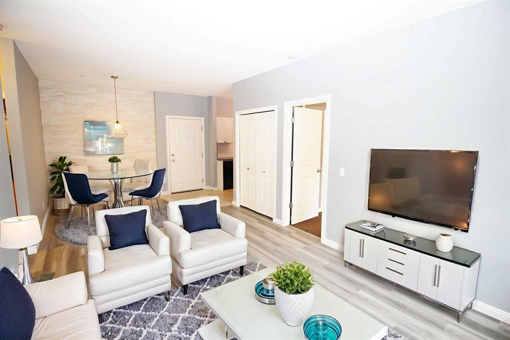Great Condo at a Great Price !! Experience modern and convenient living in McKenzie Towne with this stylish condo. The open-concept layout effortlessly blends the living, dining, and kitchen areas, accented by new luxury vinyl flooring and ample natural light. Entertain in the well-appointed kitchen with granite countertops and black appliances. Two bedrooms include a spacious primary with a walk-in closet, while the adjacent 4-piece bathroom enhances functionality. Enjoy outdoor relaxation on the balcony with views of the entrance and nearby park. Heated, underground parking adds comfort and safety, complementing the welcoming amenities of the Caledonia on the Waterfront building. McKenzie Towne offers a plethora of lifestyle amenities and outdoor activities, with schools, pathways, parks, and easy access to major routes nearby.