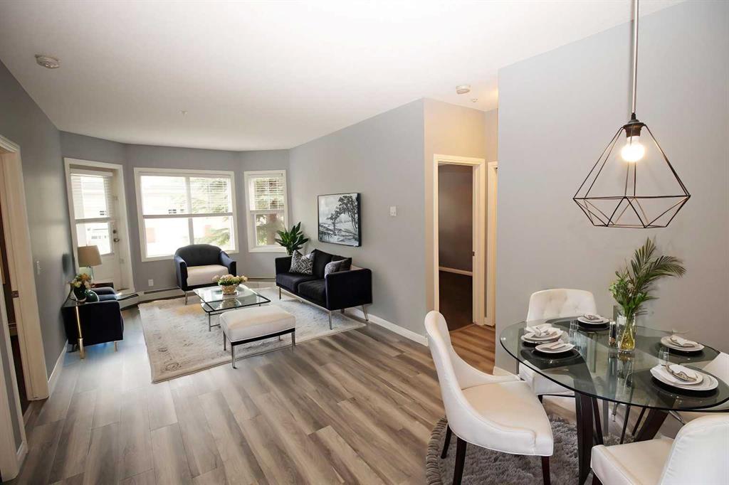 Great Condo at a Great Price !! Experience modern and convenient living in McKenzie Towne with this stylish condo. The open-concept layout effortlessly blends the living, dining, and kitchen areas, accented by new luxury vinyl flooring and ample natural light. Entertain in the well-appointed kitchen with granite countertops and black appliances. Two bedrooms include a spacious primary with a walk-in closet, while the adjacent 4-piece bathroom enhances functionality. Enjoy outdoor relaxation on the balcony with views of the entrance and nearby park. Heated, underground parking adds comfort and safety, complementing the welcoming amenities of the Caledonia on the Waterfront building. McKenzie Towne offers a plethora of lifestyle amenities and outdoor activities, with schools, pathways, parks, and easy access to major routes nearby.
