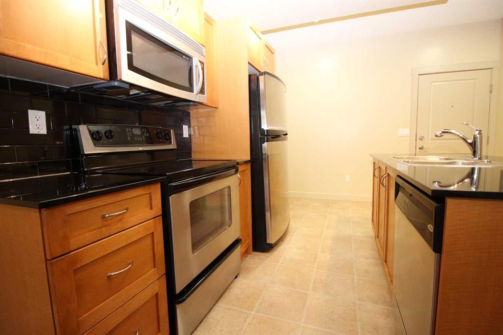 Step into the enchanting allure of Gateway Southcentre, where this beautifully upgraded 1 bed + den ground floor sanctuary awaits. Boasting 9-foot ceilings, large windows, luxury flooring and a large private patio overlooking a quiet street, this residence radiates charm and grace. The kitchen offers S/S appliances, custom cabinets, granite countertops plus a large center island/breakfast bar perfect for culinary enthusiasts and social butterflies alike. Completing this lovely home is a good sized bedroom, 4pc bath and laundry area. Additional bonuses: ALL utilities included in the condo fees plus a host of amenities including one titled U/G parking stall with a large storage cage in front plus a fitness centre, party rooms, guest suites and a huge central courtyard perfect for enjoying the beautiful outdoors. Located steps away from Southcentre Mall, City Transit/LRT station, schools, parks, restaurants and easy access to main roadways.