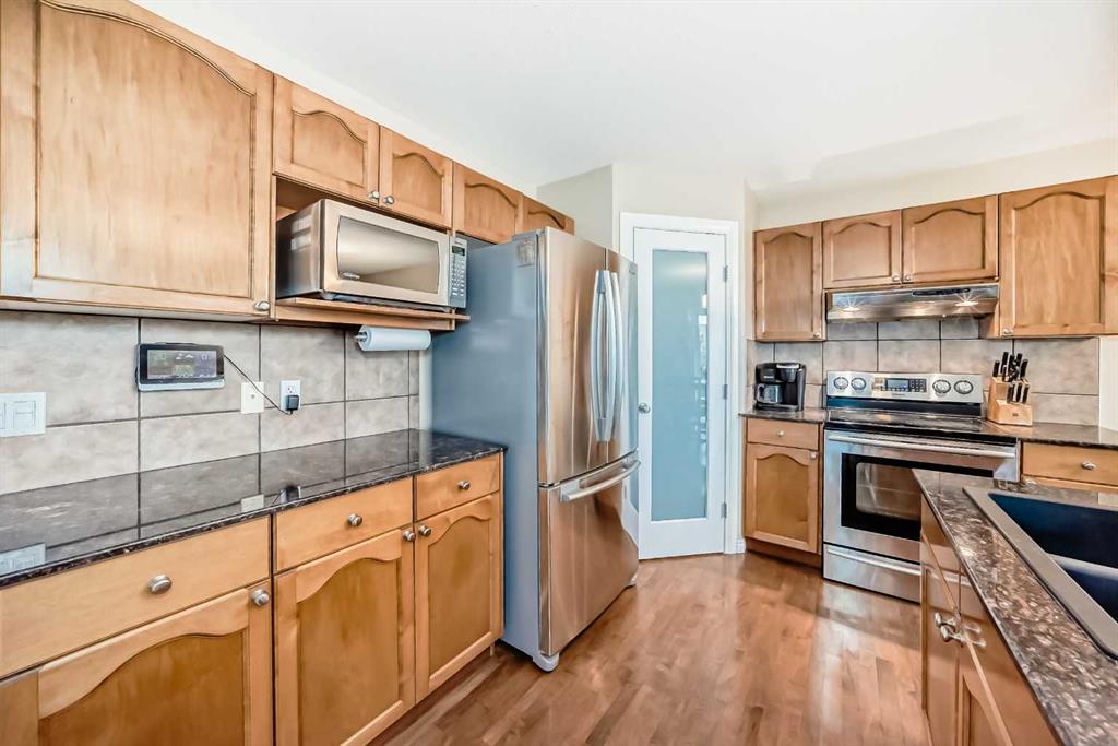 This gorgeous 3 bed, 4 bath executive home is located on a quiet cul-de-sac in the family friendly community of Rocky Ridge and comes with a fully finished walk-out basement. The main level consists of an open plan with gleaming hardwood floors, high ceilings and large windows that bring in tons of natural sunlight. The kitchen is a Chef's delight offering upgraded S/S appliances, custom cabinets, a corner pantry plus granite counter-tops and a large center island that overlooks the huge living room with a cozy gas fireplace. Completing the main level is a 2pc bath, laundry area plus a good sized dining room that grants access to a large South facing deck overlooking the private backyard with a park beside. Upstairs you will find a huge bonus room and office in the front part of the home. The Master retreat comes with a walk-in closet, 4pc ensuite with a jacuzzi tub plus mountain views. Two additional bedrooms and another 4pc bath complete the upper level. The walkout basement is fully finished offering an oversized family room, 2pc bath, extra storage space plus slider doors leading to a lovely patio with a firepit. Additional bonuses include FULL access to the Rocky Ridge Ranch Homeowners Association which offers year round activities such as Tennis/Basketball Courts, Playground, Splash Pool, Lake/Boat Rentals plus a Skating Rink and Snow Clearing in the Winter. This home is located close to schools, parks, the YMCA, major shopping/restaurants, City transit and easy access to main roadways.